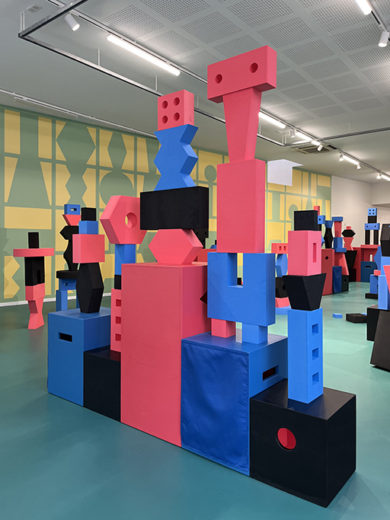 Set of three murals and workshop titled ‘Peindre le Volume’ on display at Centre Pompidou Metz, France.