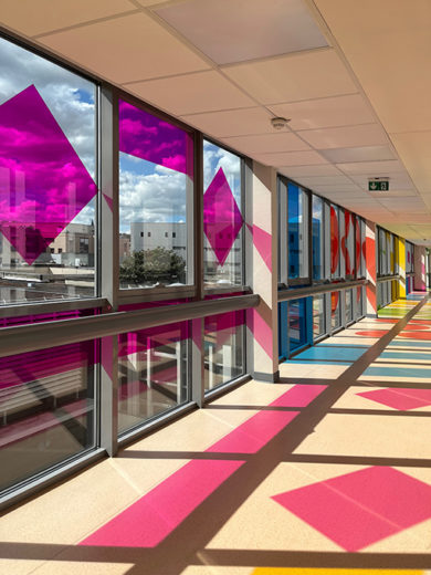 ‘Le Théâtre des Hasards’, public art installation, over three floors at the University hospital in Rouen, France, originally produced for the festival Normandie Impressionniste celebrating the 150th year anniversary of Impressionism, is now on display permanently, and part of their public art collection.